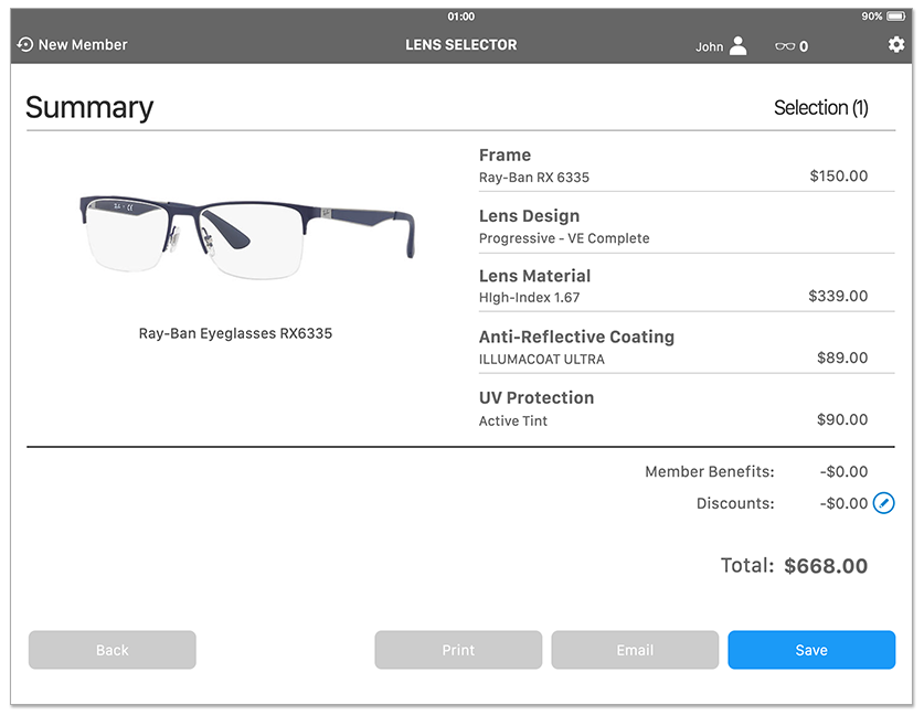 Design an iOS tablet app that modernizes the in-store eyewear experience by enabling opticians to guide customers through frame selection, prescription management, and purchase.